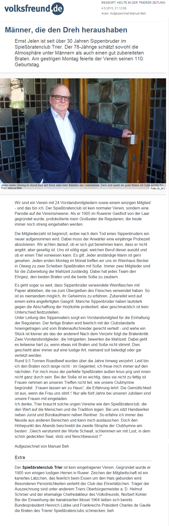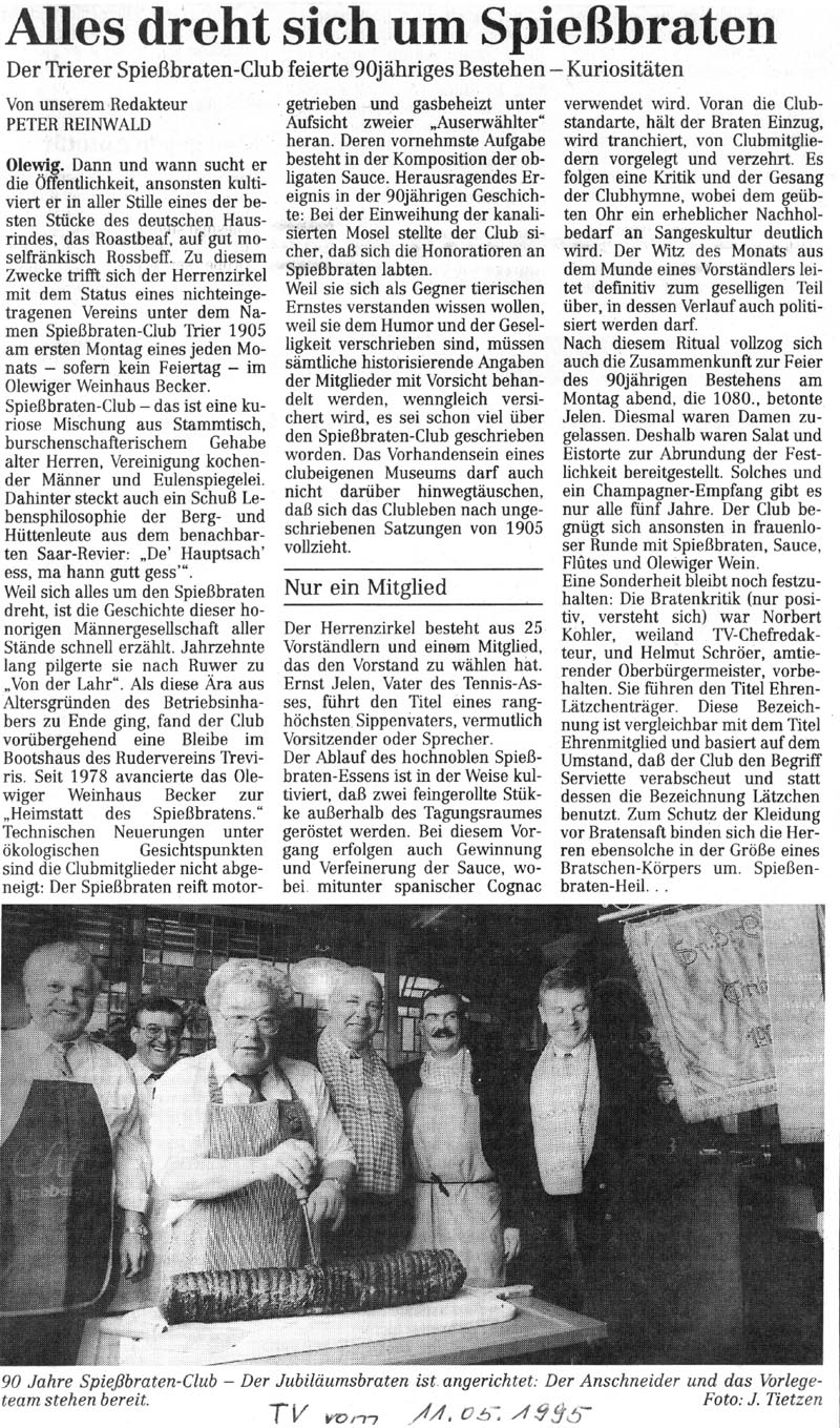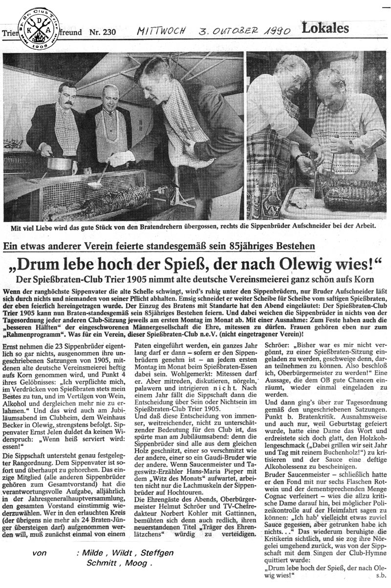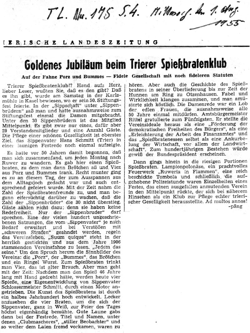 Goldenes Jubiläum beim Trierer Spießbratenklub (Trierische Landeszeitung)